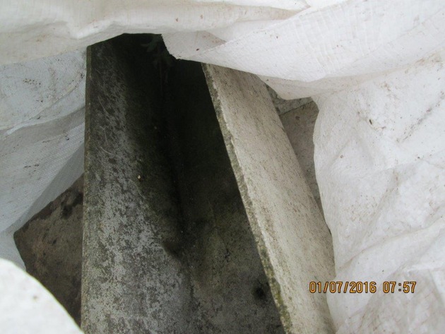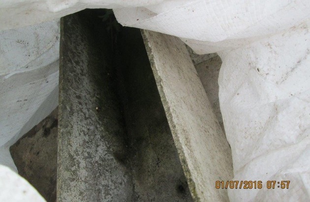 Unbekannte luden insgesamt drei Big Bags mit asbesthaltigen Wellzement- und Fassadenplatten sowie diverse Pflanzkübel ab und entfernten sich anschließend. Die Polizei veranlasste die fachgerechte Entsorgung der Platten.