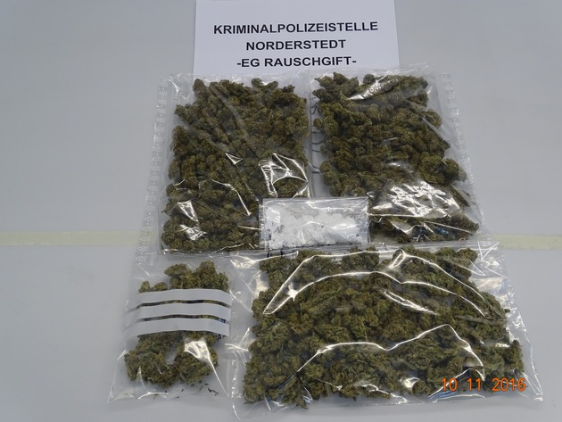 Die Ermittlungsgruppe Rauschgift der Kriminalpolizei Norderstedt hat am Mittwoch, den 09.11.16, verbotene Rauschmittel und Bargeld bei zwei mutmaßlichen Drogendealern aus Henstedt-Ulzburg beschlagnahmt.