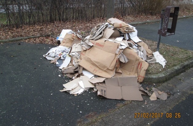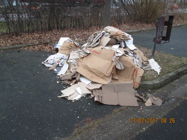 Heute Morgen, gegen 08.30 Uhr, wurde in Elmshorn, im Bereich eines Parkplatzes in der Straße "Am Franzosenhof", etwa zwei Kubikmeter Müll aufgefunden, der dort unzulässig entsorgt wurde. Es handelt sich dabei um Bauabfälle wie Rigipsplatten und Pappkartons. Das Polizeiautobahn- und Bezirksrevier Pinneberg hat die Ermittlungen wegen Verstoß gegen das Kreislaufwirtschaftsgesetz aufgenommen und bittet unter 04101-202450 um Hinweise.