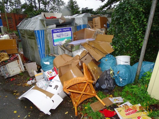 Unbekannte luden insbesondere einen Kühlschrank, zwei Kunststoffeimer mit Farbresten, diverse Kunststoffsäcke mit Hausmüll, eine große Menge an Pappe und Verpackungsmaterial sowie jede Menge Elektroschrott auf einem dortigen Containerstellplatz ab und entfernten sich anschließend.