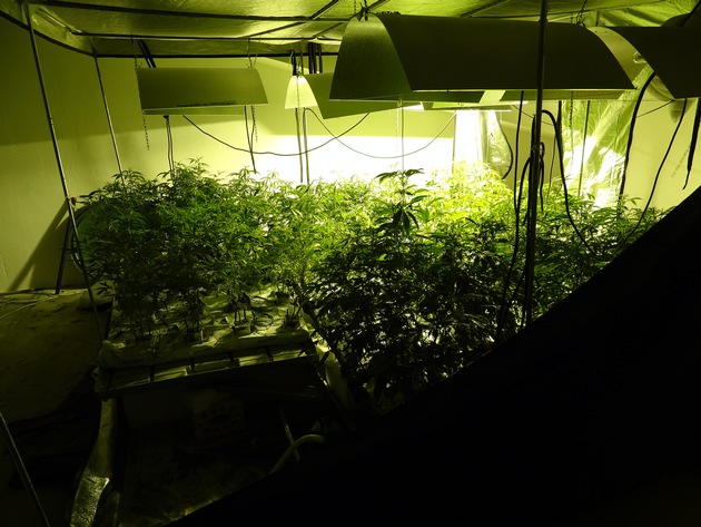 Bei der Durchsuchung des Objekts wurden knapp 60 in voller Blüte stehende Cannabispflanzen sowie mehrere Kilogramm zur Trocknung ausgelegte Cannabisblüten aufgefunden. Weitere Überprüfungen und Ermittlungen vor Ort führten die Ermittlungsgruppe Rauschgift zu einer weiteren Cannabisaufzucht mit knapp 750 Pflanzen in unterschiedlichen Wachstumsstadien und mehreren Kilogramm bereits verpackten Cannabis im selben Objekt.