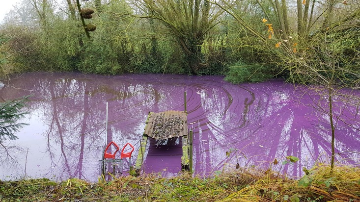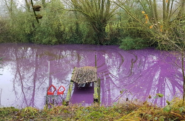 Unbekannte verunreinigten einen dort eingezäunten Teich, indem sie möglicherweise Farbe in das Gewässer einbrachten. Zeugen bemerkten den seither lilafarben leuchtenden Teich sowie neben einem Feldweg in einem Knick abgelegten Malermüll wie beispielsweise Silikonkartuschen, Plastikeimer und Kachelreste und verständigten die Polizei.