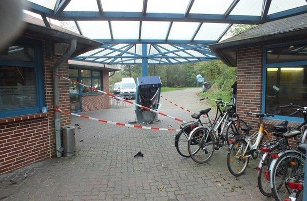 Bislang unbekannte Täter haben in der Nacht zu Montag, 16. Oktober 2017, einen Fahrkartenautomaten der Deutschen Bahn AG in Friedrichstadt gesprengt und die darin befindlichen Geldkassetten erbeutet. Der Gesamtschaden beläuft sich auf rund 30.000 Euro.