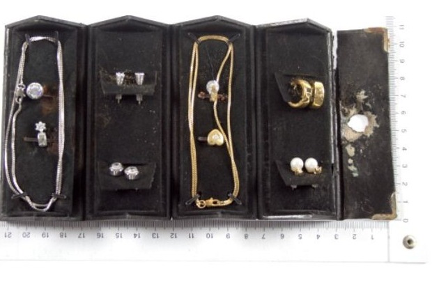 Eine schwarze Schmuckschatulle mit mehreren Ohrsteckern, einer silberfarbenen und goldfarbenen Panzerkette sowie insgesamt vier Anhänger sind am Neujahrstag (1.1.2015) auf einem Privatgrundstück in der Brunostraße aufgefunden worden. Die Ermittler des Einbruchskommissariat (K 21/ 22) gehen davon aus, dass die Schmuckschatulle aus einem Einbruchsdiebstahl stammt. Die rechtmäßigen Besitzer konnte bislang nicht gefunden werden. Über die Lichtbildveröffentlichung der Fundstücke hoffen die Ermittler auf Hinweise, die zu den rechtmäßigen Eigentümern führen. Auf der Homepage des Polizeipräsidiums Südhessen, www.polizei.hessen.de , sind die Schmuckstücke abgebildet. Unter der 06252 / 706-0 werden Hinweise entgegen genommen.