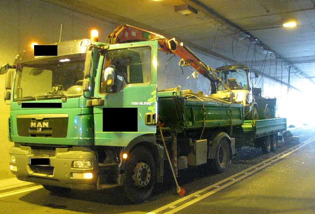 Weil der Schwenkarm des Radladers nicht ordnungsgemäß eingefahren war, reichte er bis zur Tunneldecke und riss dort auf einer Länge von 80 Metern mehrere sogenannte Adaptionslichter mitsamt der Haltevorrichtung und Stromkabel ab.