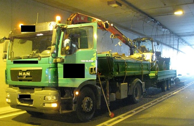 (we) Ein abstehender Schwenkarm eines Radladers riss am Montagnachmittag im Mönchwaldtunnel Teile der Deckenbeleuchtung ab und verursachte damit einen Schaden von etwa 85.000 Euro.