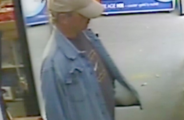 Täterbeschreibung: Etwa 50 Jahre alt und ca. 170 cm groß. Hagere Gestalt, blaue Augen und blonde Haare zu einem Zopf gebunden. Sommersprossen. Bekleidet mit einem dunklen T-Shirt mit der Aufschrift "Nike", einer hellen Jeansjacke und hellen Hose. Trug eine braune Strumpfmaske, weiße Gummihandschuhe und schwarz-weiße Chucks.