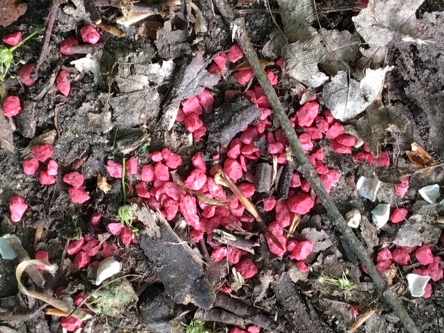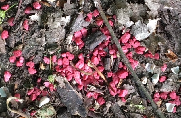 Da nicht auszuschließen ist, dass es sich bei der ausgelegten Substanz tatsächlich um eine Art Giftköder handelt, bittet die Polizei Spaziergänger und Gassigeher vorsichtig zu sein.