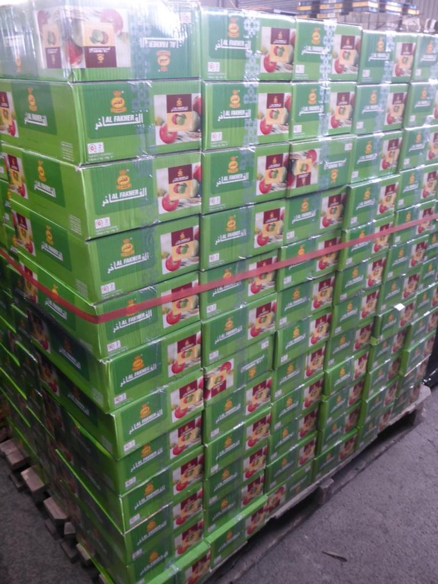 Zollfahndungsamt Hamburg stellt rund 40 Tonnen unversteuerten Wasserpfeifentabak sicher; Ermittlungen wegen rund 7,5 Millionen Euro Steuerhinterziehung; Zwei Männer in Haft