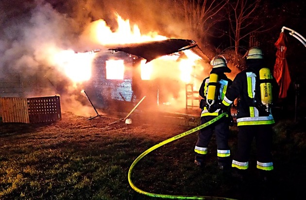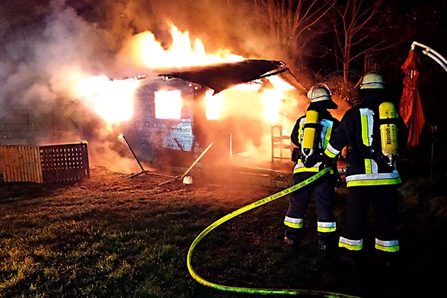 FW-E: Brennt kleines Gartenhaus in voller Ausdehnung