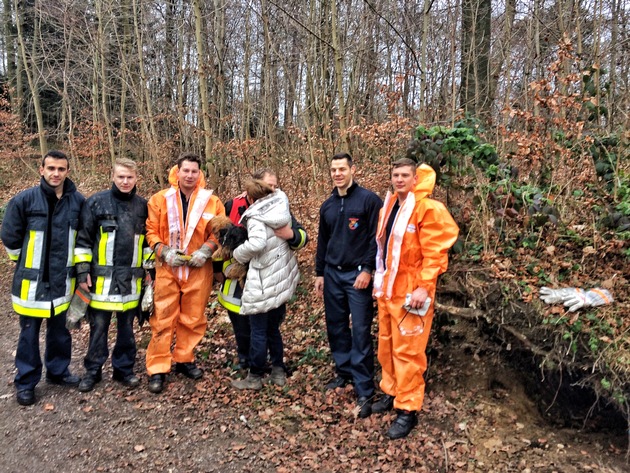 Auf der üblichen Morgenrunde im Stadtwald hat die zweijährige Norfolk-Terrier-Hündin "Angel" heute (10.12.2016) wohl etwas Spannendes unter einem Baumwurzelteller entdeckt. Ihre Neugier wurde ihr zum Verhängnis, sie krabbelte hinein und steckte offensichtlich fest. Rufen und locken der Hundehalterin nützten nichts. Angel blieb im Hohlraum unterm Wurzelteller verbogen. In ihrer Hilflosigkeit wählte die Frau den Notruf, Retter der Feuerwache Rüttenscheid befreiten das Tier mit Schaufeln, Spaten und vollem Körpereinsatz. Angel ist befreit und wohlauf, Frauchen überglücklich und Zugführer Michael Wierling nach der spontanen Umarmung der Hundehalterin etwas verlegen. Angel ist übrigens auf dem Weg nach Hause - an der Leine. Ein Schaumbad wartet... . (MF)