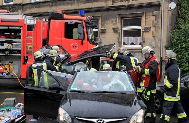 FW-E: Verkehrsunfall mit zwei PKW, eine Person eingeklemmt, eine weitere ebenfalls verletzt