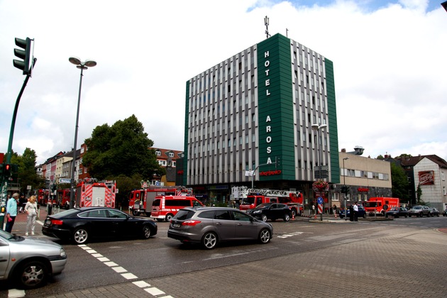 Am Mittag ist im Keller des Restaurants "Vapiano" in Essen-Rüttenscheid ein Wäschetrockner in Brand geraten. Die Rauchentwicklung löste die Brandmeldeanlage aus, zwei Löschzüge der Essener Feuerwehr rückten an. Zu diesem Zeitpunkt war die Räumung des Restaurants und des Hotels Arosa bereits angelaufen. Etwa 110 Personen, Hotel- und Restaurantgäste sowie Mitarbeiter, verließen das Gebäude und hielten sich im Umfeld auf. Das Feuer löschte ein Atemschutztrupp mit einem Rohr sehr schnell. Die Entrauchung des verwinkelten Kellers nahm mehr Zeit in Anspruch, mehrere Hochleistungslüfter kamen zum Einsatz. Nachdem Messungen keine gesundheitsgefährdenden Schadstoffkonzentrationen mehr ergaben, konnten alle Menschen das Haus nach 15.00 Uhr wieder betreten. Die eigentliche Brandursache ist unbekannt, die Kriminalpolizei wird ermitteln. Verletzt wurde niemand.