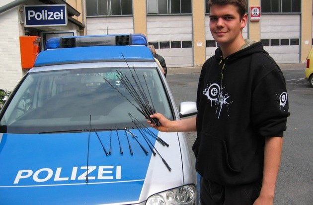 Am 11.08.2007, gegen 20.45 Uhr, erreichte die Polizei in Bad Salzdetfurth ein Anruf aus Holle, in dem um das Erscheinen der Polizei gebeten wurde, da man 24 an Kraftfahrzeugen entwendete Antennenstäbe zurückgeben wolle.