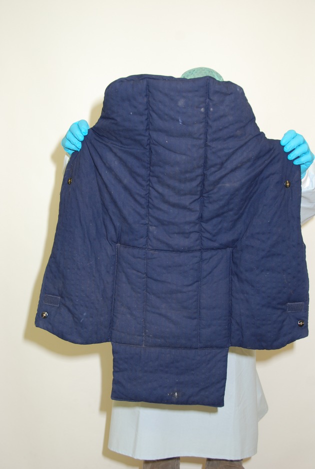 Bei der Suche am Tatort stießen Beamte dann auf einen dunkelblauen Sitzbezug einer Sport-/Kinderkarre der Marke "Teutonia". Es kann derzeit nicht ausgeschlossen werden, dass dieser Gegenstand als Tatmittel für den Raub vorgesehen war. Daher fragen die Ermittler weiter: Wer kann Angaben zur Herkunft des Sitzbezuges geben?