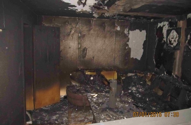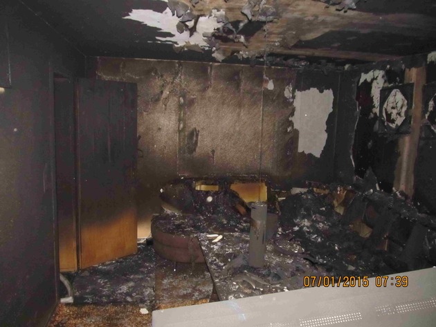 Alle Bewohner eines Mehrfamilienhauses in der Papiermühle in Holzminden mussten vorsichtshalber nach einem Wohnungsbrand am heutigen frühen Morgen ihre Wohnungen verlassen. Der Wohnungsinhaber wurde vorsorglich in das Holzmindener Krankenhaus mit dem Verdacht einer leichten Rauchgasvergiftung eingeliefert. Der 51jährige Wohnungsinhaber im Erdgeschoss des Hauses hatte kurz nach 06:00 Uhr am heutigen Morgen den Ausbruch des Brandes in seinem Wohnzimmer selbst bemerkt. Als erste Überlegungen, den Brand noch selbst löschen zu können, von ihm verworfen wurden, weckte er sofort alle weiteren Bewohner auch in den oberen Etagen und ließ über Notruf die Rettungskräfte und Polizei verständigen. Als kurz danach die Feuerwehr eintraf, konnte der Wohnungsbrand schnell gelöscht werden. Zu verhindern war allerdings nicht, dass die Einrichtung des Wohnzimmers völlig verbrannte und das Zimmer derzeit nicht bewohnbar ist. Nach ersten Einschätzungen ist auch von leichtem Gebäudeschaden auszugehen. Den Gesamtschaden schätzen Polizei und Feuerwehr auf ca. 30.000,-- EUR. Nach erster vorsichtiger Einschätzung könnte der Brand im Wohnzimmer durch unsachgemäße und fahrlässige Bedienung eines Elektrogerätes entstanden sein.