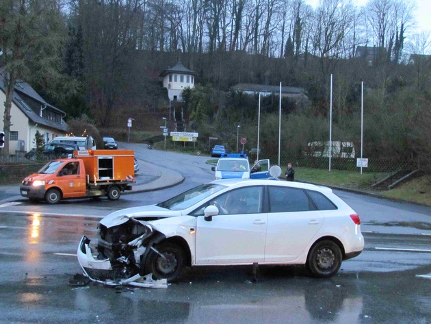 Einen Gesamt-Blechschaden in Höhe von ca. 14.000,-- EUR forderte am heutigen Vormittag ein Zusammenstoß zweier PKW auf der Münchhausenkreuzung in Bodenwerder. Kurz nach 08:00 Uhr befuhr eine 33jährige Seat-Fahrerin aus Bad Pyrmont mit ihrem PKW die Poller Straße (B 83) aus Richtung Hehlen kommend und wollte auf der Münchhausenkreuzung nach links in den Münchhausenplatz abbiegen. Dabei kam es zum Zusammenstoß mit einer entgegenkommenden 32jährigen Opel-Fahrerin aus Pegestorf, die auf der B 83 in Richtung Hehlen unterwegs war. Beide Fahrzeuge wurden jeweils mit ca. 7.000,-- EUR Schaden erheblich beschädigt. Verletzt wurde keine der beiden Frauen. Sie kamen mit einem gehörigen Schrecken davon.