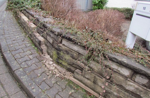 (Hess. Oldendorf) In der Zeit zwischen Sonntag, 08.02.2015, 09.30 Uhr, und Dienstag, 10.02.2015, 15:45 Uhr, beschädigte offensichtlich ein größeres Fahrzeug (Lkw, eventuell mit Anhänger) beim Abbiegen an der Einmündung Segelhorster Straße / Horstweg eine Grundstücksmauer. Die Mauer wurde auf mehrere Meter eingedrückt. Trotz des erheblichen Schadens setzte der Verursacher seine Fahrt fort und entfernte sich unerlaubt von der Unfallstelle.