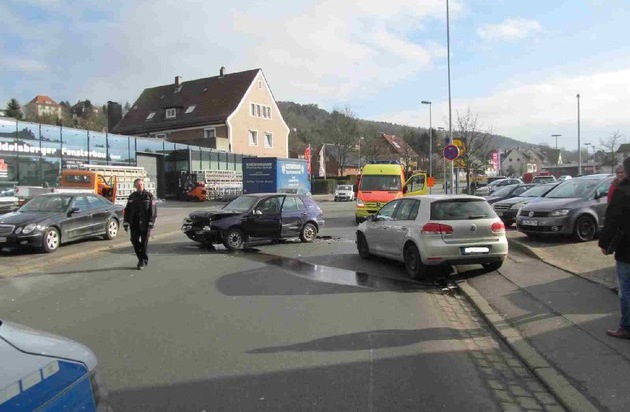 Bei einem Zusammenstoß mit drei beteiligten PKW am heutigen Vormittag in Stadtoldendorf wurden zwei Personen leicht verletzt und insgesamt drei PKW beschädigt. Gegen 09:30 Uhr beabsichtigte eine 70jährige Fahrerin mit ihrem VW Polo vom Parkplatz eines Einkaufsmarktes in Stadtoldendorf in die Neue Straße nach links einzubiegen. Dabei stieß die Frau mit einem VW Golf zusammen, deren Fahrerin die Neue Straße befuhr. Durch den Zusammenstoß gerät die 65jährige Golffahrerin ins Schleudern und prallt anschließend frontal mit einem entgegenkommenden PKW zusammen, dessen 22jähriger Fahrer die Neue Straße in Richtung stadtauswärts befuhr. An allen beteiligten Fahrzeugen entstand erheblicher Sachschaden. Beide Golffahrer, die 65jährige und der 22jährige junge Mann wurden dabei leicht verletzt, konnten aber nach ambulanter Behandlung aus dem Krankenhaus Holzminden wieder entlassen werden.