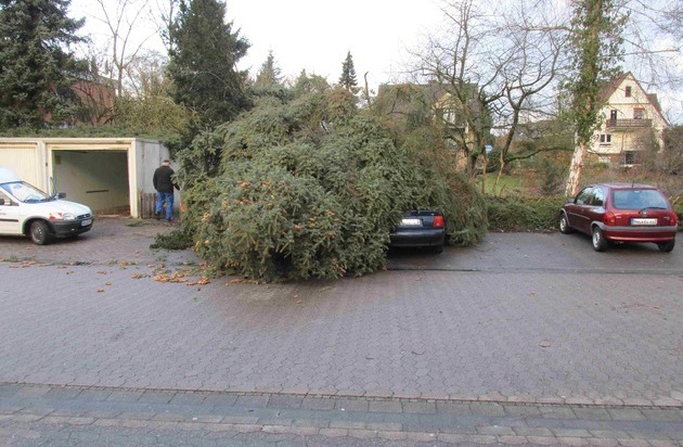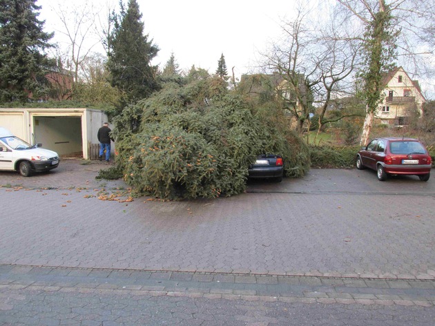 POL-HOL: Auswirkungen des Sturms der letzten Nacht: Baum auf PKW gestürzt - Raum Bodenwerder stark betroffen -