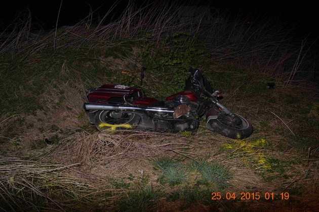 rneut ereignete sich ein schwerer Motorradunfall im Landkreis Holzminden, bei dem ein 43jähriger Mann aus Bevern in der vergangenen Nacht schwer verletzt ins Krankenhaus eingeliefert werden musste. Der Kradfahrer befuhr mit einer schweren Harley Davidson alleinbeteiligt die Bundesstraße 64 auf der Umgehungsstraße von Holzminden in Richtung Lobach. Aus bislang ungeklärter Ursache geriet der Zweiradfahrer mit der schweren Maschine im Bereich der Abfahrt "Bülte" nach rechts von der Fahrbahn ab. Im weiteren Verlauf konnte sich der Kradfahrer noch auf seinem Krad halten, streifte auf der Grünfläche einen Baum und verlor danach vollends die Kontrolle. Er stürzte mit dem Zweirad und verletzte sich insgesamt dabei schwer und wurde mit dem Rettungswagen dem Krankenhaus in Höxter zugeführt. Am Krad entstand mit ca. 10.000,-- EUR erheblicher Sachschaden.