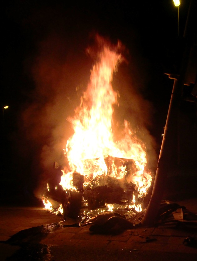 Der Pkw geriet unmittelbar darauf in Brand. Ein zufällig vorbeikommender Mann (45, aus Hameln) griff couragiert ein und zog den verletzten Opel-Fahrer aus dem Fahrzeug, bevor der Pkw kurz darauf in Vollbrand stand.
