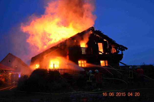 Auf rund 250.000,-- EUR Sachschaden schätzen Polizei und Feuerwehr den Vollbrand eines Holz-Wohnhauses in der vergangenen Nacht in Rühle. Der Hund der vierköpfigen Familie hatte rechtzeitig angeschlagen, so dass sich alle Bewohner rechtzeitig vor den Flammen aus dem Haus retten konnten. Die Untersuchungen nach der Brandursache dauern an.