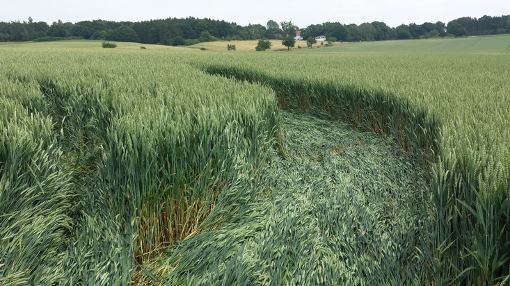 Spuren deuten darauf hin, dass das Getreide großflächig von Menschen auf nicht bekannte Art und Weise niedergedrückt wurde; Wettereinflüsse und Wildtiere als Verursacher werden derzeit ausgeschlossen. Eine geordnete Struktur war nicht erkennbar, so dass man nicht von Kornkreisen oder ähnlichen Formen im Getreidefeld sprechen kann. Es wird wegen Sachbeschädigung ermittelt. Die genaue Schadenshöhe lässt sich noch nicht beziffern, dürfte aber einige hundert Euro betragen.