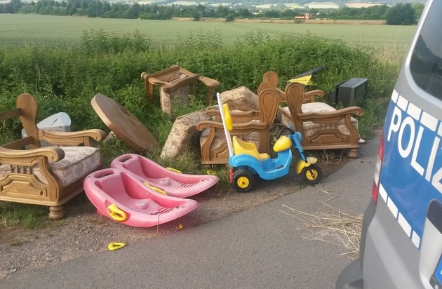 Unter den hier entsorgten Abfällen sind einige markante Gegenstände (u.a. Sitzmöbel, Kunststoffschlitten, Dreirad, Röhren-Fernsehgeräte, Reifen), die den Ermittlern eventuelle Hinweise auf den Verursacher liefern könnten. Hinweise werden von der Polizeistation Hess. Oldendorf unter Tel. 05152/947490 entgegen genommen.