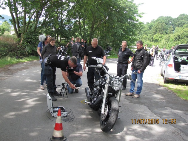 Vor dem Hintergrund des zunehmenden Verkehrs mit Motorrädern und den damit leider einhergehenden Verkehrsunfällen, bei denen auch in jüngster Vergangenheit wiederum zahlreiche Zweiradfahrer schwerstverletzt wurden, führte das Polizeikommissariat Holzminden am vergangenen Samstag erneut gezielte Motorradkontrollen durch. Unterstützt von polizeilichem Fachpersonal aus den Polizeiinspektionen Hameln-Pyrmont/Holzminden und Hildesheim nahmen insgesamt 17 Beamte gezielte Kontrollen in Bereich Lauenförde, im Bereich Bodenwerder und Stadtoldendorf vor. Von den überprüften ca. 200 Krädern waren insgesamt 53 zu beanstanden bzw. von den Fahrern Verstöße begangen. 15 Mal wurden durch Geschwindigkeitsmessungen zum Teil erhebliche Überschreitungen festgestellt, die neben den Verkehrsordnungswidrigkeitenanzeigen auch zweimal ein Fahrverbot nach sich ziehen werden. Acht Verstöße wurden aufgrund von Bauartveränderungen aufgedeckt, in einem Fall wurde die Auspuffanlage beschlagnahmt und in drei Fällen gänzlich die Weiterfahrt untersagt. Letztlich wurde bei den detaillierten Kontrollen auch eine Urkundenfälschung aufgedeckt. Bei den Kontrollen kam auch ein Phonmesser zum Einsatz, um den zulässigen Lärmpegel zu jeweils messen. Trotz der Kontrollen mit zahlreichen aufklärenden Gesprächen und Verteilung von Hinweisflyern kam es über das Wochenende zu vier Unfällen, in denen Zweiradfahrer verwickelt waren: Am Samstagvormittag, kurz vor 11:00 Uhr befuhr eine Motorradgruppe aus dem Großraum Hannover mit ihren Maschinen die B 83 aus Hehlen kommend in Richtung Grohnde. In Höhe des Kalkwerks wollte einer nach links abbiegen und bremste seine Kawasaki aus diesem Grunde ab. Zwei folgende Fahrer bemerkten dieses zu spät und fuhren auf. Alle drei kamen zu Fall, wobei zwei der Fahrer verletzt in das Krankenhaus nach Hameln transportiert werden mussten. Nachmittags gegen 16:30 Uhr befuhren zwei Kradfahrer aus Süddeutschland mit ihren Krädern die Landesstraße 550 von Meinbrexen kommend in Richtung Lauenförde. Als der vorfahrende mit seiner Maschine nach links in die Sohnreystraße abbiegen wollte, fuhr der nachfolgende Zweiradfahrer ebenfalls auf. Beide wurden schwer verletzt und mussten mit Knochenbrüchen ins Krankenhaus nach Höxter transportiert werden. Das Motorrad des Auffahrenden fing dabei sogar Feuer und brannte völlig aus. Wenig später, gegen 16:45 Uhr, fuhr ein 68jähriger Motorradfahrer auf der Bundesstraße 240 im Bereich Holzen auf einen rechts an den Straßenrand gefahrenen PKW auf. Der 68jährige aus Stadtoldendorf stammende Zweiradfahrer stürzte und verletzte sich an der Schulter. Auch er musste sich in ärztliche Behandlung begeben. Letztlich stürzte eine 19jährige aus Barsinghausen stammende Motorradfahrerin mit ihrer Maschine auf der Landesstraße 428 zwischen Lüntorf und Ottenstein. In einer Linkskurve kam sie von der Straße ab und prallte gegen die Schutzplanke. Die 19jährige musste verletzt in das Sana-Klinikum nach Hameln mit dem Rettungswagen verbracht werden.