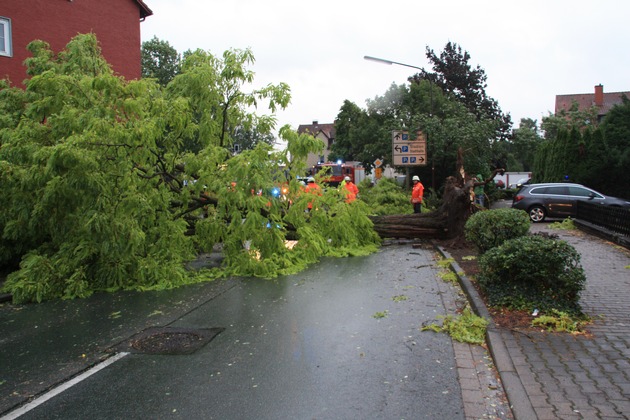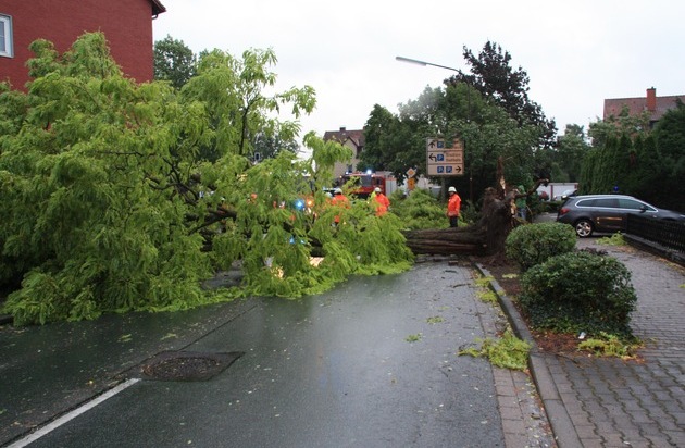 21:29 Uhr: laut Anrufer ist in Bad Münder ein Baum auf die Bahnhofstraße gestürzt,