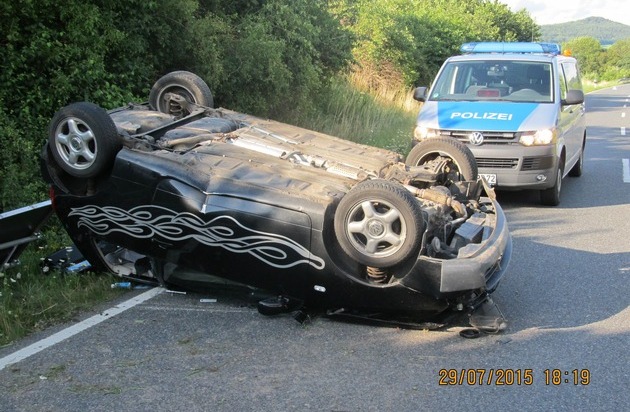 POL-HOL: B 64 - Umgehung Bevern: Von Fahrbahn abgekommen und überschlagen - Fahrer kam mit leichten Verletzungen davon -