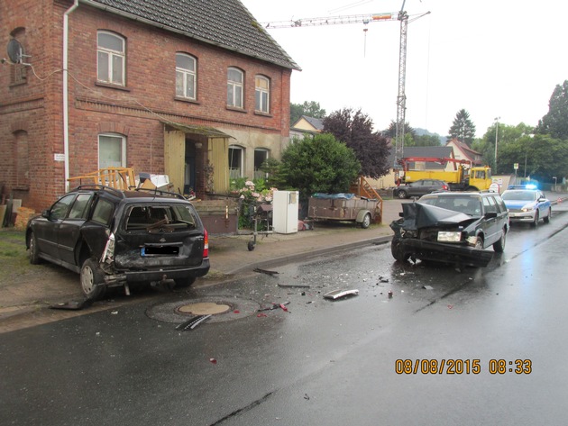Eine leicht verletzte Fahrerin sowie zwei völlig demolierte PKW forderte ein Vekehrsunfall innerhalb der Ortsdurchfahrt von Heinsen am heutigen Vormittag. Gegen 08:15 Uhr befuhr die 42jährige Fahrerin aus Preußisch-Oldendorf mit ihrem Volvo die Bundesstraße 83 aus Richtung Polle kommend, in Richtung Holzminden. Auf der Hauptstraße in Höhe des Sägewerkes prallte die Frau ungebremst auf einen am Fahrbahnrand ordnungsgemäß geparkten Opel Astra. Die Volvo-Fahrerin wurde dabei leicht verletzt und wurde mit dem Rettungswagen in das Krankenhaus in Holzminden eingeliefert. An beiden Fahrzeuge entstand wirtschaftlicher Totalschaden.