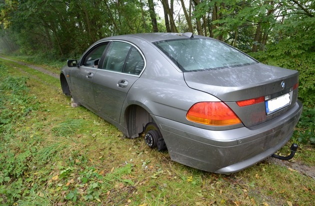 POL-HOL: Einbruch in Autocenter Eschershausen: Einbrecher entwendeten 7er BMW und demontierten anschließend alle vier Räder - Fahrzeug auf Feldweg ohne Räder stehen gelassen -