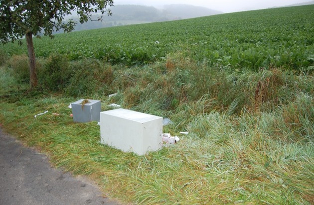 Bisher noch nicht aufgefunden ist ein 20 x 20 cm großer Schranktresor, den die Täter aus einem Behältnis herausgebrochen hatten.