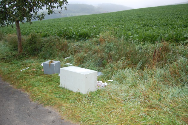 Bisher noch nicht aufgefunden ist ein 20 x 20 cm großer Schranktresor, den die Täter aus einem Behältnis herausgebrochen hatten.