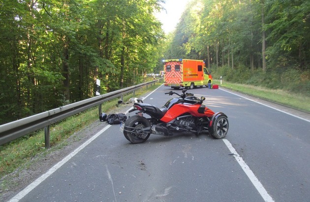 Nach Auskunft der Polizei war die 45-jährige Frau aus Stadtoldendorf mit einem 3-rädrigen Fahrzeug, einem sogenannten "Trike", unterwegs. Der Unfall passierte um 10.00 Uhr auf der Steigungsstrecke im Verlauf einer Rechtskurve. Mit ihrem Trike war sie zunächst von der Fahrbahn abgekommen und dann so heftig gegen die Leitplanke geprallt, dass sie schwere Verletzungen erlitt.