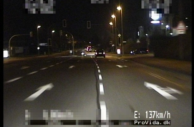 Der 20-jährige Fahrer eines Audi fiel der Besatzung einer Zivilstreife, die mit einem speziellen Videofahrzeug (PPS-Fahrzeug) im Rahmen von Verkehrsüberwachungsmaßnahmen unterwegs war, gegen 22.45 Uhr auf. Der Audi war mit deutlich überhöhter Geschwindigkeit auf der Pyrmonter Straße bzw. Wangelister Straße stadtauswärts unterwegs. In einem Streckenabschnitt, in dem eine Höchstgeschwindigkeit von 50 km/h zulässig ist, fuhr der Audi bis zu 132 km/h. Die Kreuzung Wangelister Straße / Böcklerstraße / Wangelister Feld (die Ampel war ausgeschaltet) durchfuhr er mit 140 km/h (zulässig sind hier 70 km/h). Hier kam es beinahe zu einer Kollision mit einem aus dem Wangelister Feld einbiegenden Pkw, dessen Fahrer offenbar nicht mit der hohen Geschwindigkeit rechnete (siehe Foto). Durch die rücksichtlose Fahrweise des 20-Jährigen sind die Insassen des bislang unbekannten Fahrzeuges konkret gefährdet worden.