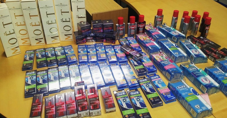 Bei der Durchsuchung des Fahrzeuges konnten Waren im Wert von mindestens 1300 Euro aufgefunden werden, die in Müllsäcken versteckt waren. Die aufgefundene Waren (u.a. hochwertige Kosmetika und Pflegeprodukte sowie Champagnerflaschen) konnten im Rahmen der weiteren Ermittlungen teilweise örtlichen Ladengeschäften zugeordnet werden. Diese stammen aus Diebstahlstaten, die am Donnerstagvormittag verübt wurden.