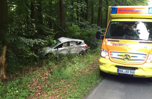 Der 77jährige Fahrzeugführer dieses Fords Kuga befuhr die K25 aus vom Heidbrink kommend in Richtung Reileifzen. Beim Befahren einer Rechtskurve im Waldgebiet wechselte plötzlich Wild die Fahrbahn, so dass der Fahrzeugführer ein Ausweichmanöver einleiten musste. Dadurch geriet er nach links von der Fahrbahn ab und prallte gegen zwei Bäume. Gottseidank war der Fahrer alleine im Fahrzeug, als das Fahreug mit seiner rechten Seite gegen die Bäume prallte. Der Fahrer erlitt nur leichtere Verletzungen und wurde im vorsorglich hinzugerufenen Rtw behandelt. Die den Unfall aufnehmenden Beamten der Polizeistation Bodenwerder schätzen den Totalschaden am Fahrzeug auf ca. 8000 Euro.