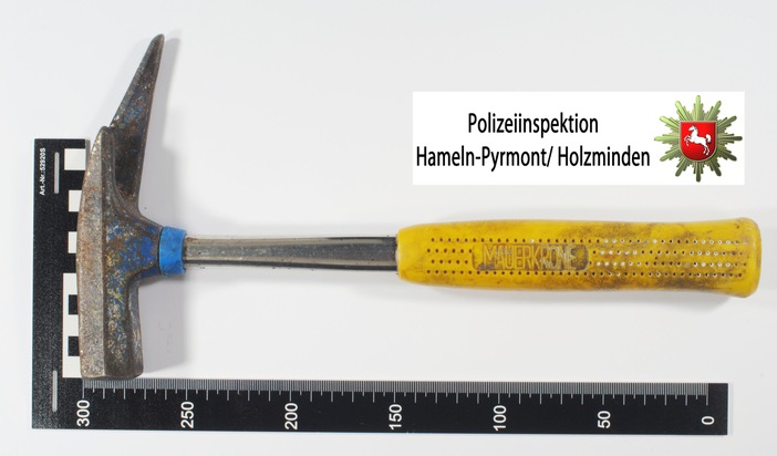 Zeugen, die verdächtige Personen gesehen oder sonstige Beobachtungen gemacht haben bzw. Hinweise zu dem abgebildeten Latthammer geben können, werden gebeten, sich unter der Telefonnummer 05151/933-222 mit der Polizei Hameln in Verbindung zu setzen.