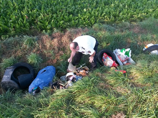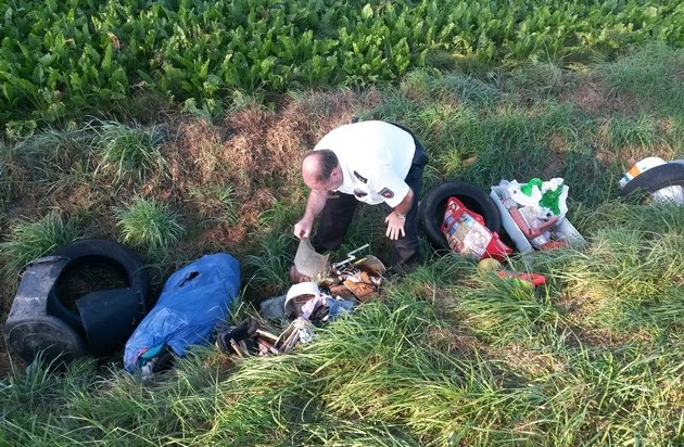 An der Landesstraße 433 (Nebenstrecke Rinteln - Hameln) sind vermutlich in der vergangenen Nacht erneut Abfälle illegal im Straßengraben entsorgt worden. Unbekannte lagerten größere Mengen an Müll, darunter auch Plastikkübel und Reifen, zwischen Hohenrode und Rumbeck sowie zwischen Rumbeck und Heßlingen am Fahrbahnrand der Landesstraße ab.