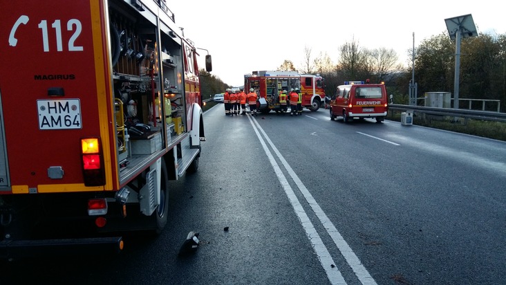 POL-HM: Schwerer Verkehrsunfall auf der Bundesstraße 83 - Rettungshubschrauber gelandet - Bundesstraße voll gesperrt