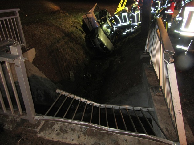 Nach derzeitigen Ermittlungsstand kam die aus Richtung Dielmissen kommende Fahrzeugführerin aus noch ungeklärten Gründen auf gerader Strecke nach links von der Fahrbahn ab, prallte gegen das am linken Fahrbahnrand befindliche Brückengeländer des dort angrenzenden Feldweges, und kam anschließend im dahinterliegenden Straßengraben zum Stillstand.