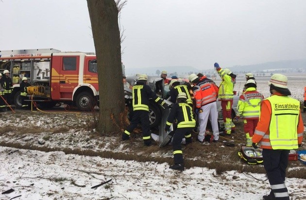 POL-HM: Tödlicher Verkehrsunfall - Pkw prallt auf Landesstraße 433 gegen Baum
