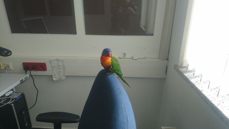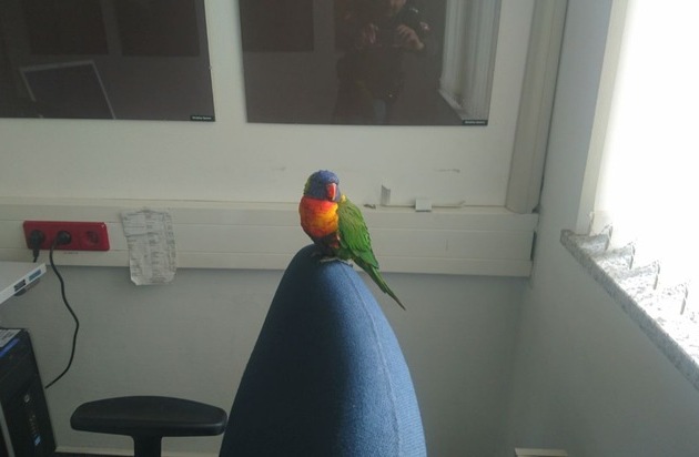 Am heutigen Karfreitag Vormittag stellten Mitarbeiter des Bathildiskrankenhauses an einem Fenster im Hof des Gebäudekomplexes einen bunten Papagei fest. Die Sorge um den Vogel ließ Herrn Popescu, der als Arzt im Krankenhaus tätig ist, keine Ruhe. Den Papagei konnte er schließlich mit Wasser und Apfelstückchen anlocken und einfangen. In einem mit Löchern versehenen Karton wurde das Tier dann in der Wache der Polizei Bad Pyrmont abgegeben. Auch dort wurde der Papagei, bei dem es sich nach Einschätzung der Beamten um einen Loris handeln könnte, mit Apfelstücken und Wasser versorgt bevor er für eine artgerechte Unterbringung zum Tierpark Bad Pyrmont gebracht wurde. Bisher haben sich keine Hinweise auf den Halter und die Herkunft des Vogels ergeben.