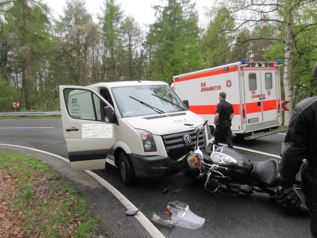 POL-HM: Frontalzusammenstoß zwischen Kradfahrer und Führer eines Kleintransporters - Osterwochenende endet für Kradfahrer im Krankenhaus