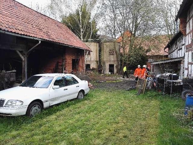 Zu einem weiteren Brand kam es anschließend noch am frühen Abend des Sonntags. Gegen 18.05 Uhr meldete ein Anwohner einen Brand eines Nebengebäudes / einer Scheune zu einem ebenfalls auf dem Grundstück befindlichen und seit Jahren unbewohnten Fachwerkhaus im Ortskern von Varrigsen. Auf Grund der bisherigen Feststellungen geht die Polizei hier von Brandstiftung aus.