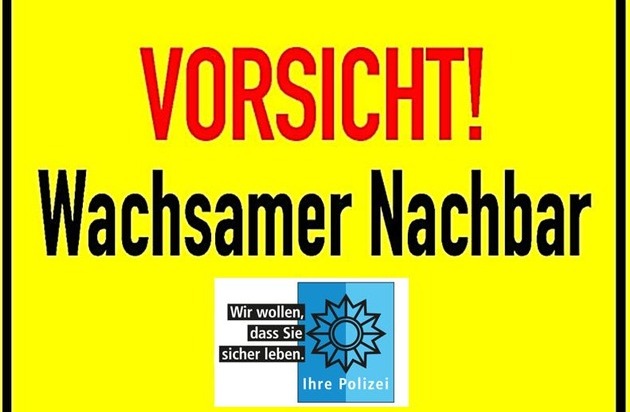 Die Aktion "Vorsicht! - Wachsamer Nachbar" sollte immer gelten, aber während der Urlaubs- und Ferienzeit besonders.