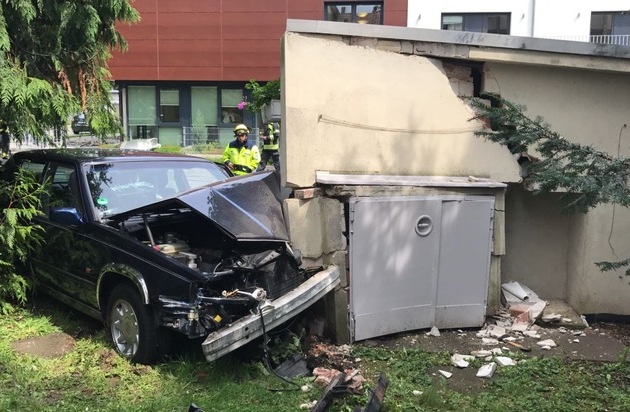 Am Volvo und an der Garage entstanden erhebliche Sachschäden. Ein in der Garage untergestellter Skoda dürfte ebenfalls beschädigt sein.